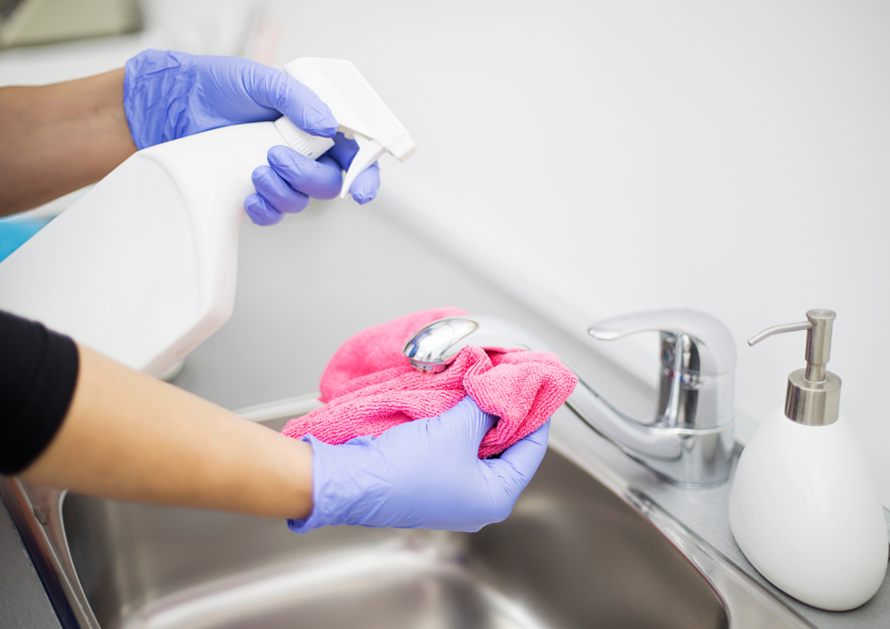 • Bathroom sinks, counters, toilets, tubs/showers (soap scum maintained)